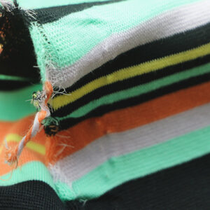 产品编号 V18081802。我们呈现一款让经典与活力碰撞的面料——大循环色织彩条棉氨弹力罗纹布。